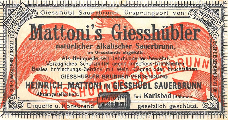 帝国境内成立了水青冈矿泉水的三个销售分店。于是维也纳、布拉格和卡罗维发利正派市民可以在靠近自己家园之处享用矿泉水。